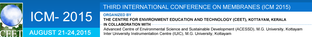 The International Conference on Membranes (ICM-2015), is organized by the Centre for Environment Education and Technology (CEET), Kottayam, Kerala